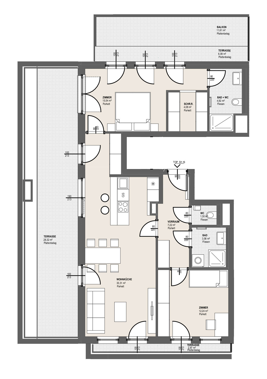 - Großzügige Freiflächen: Loggien, Balkone, Terrassen, Eigengärten