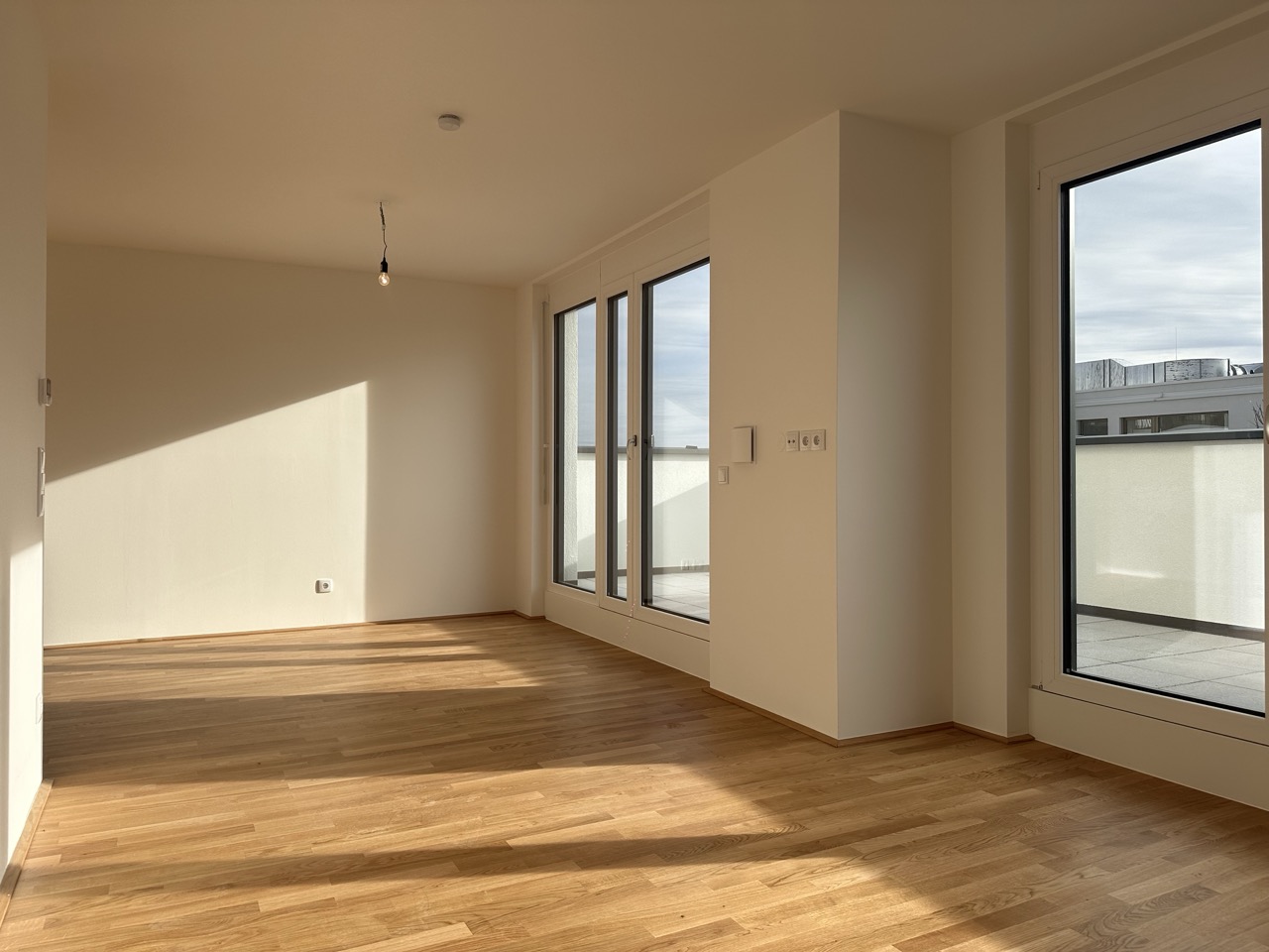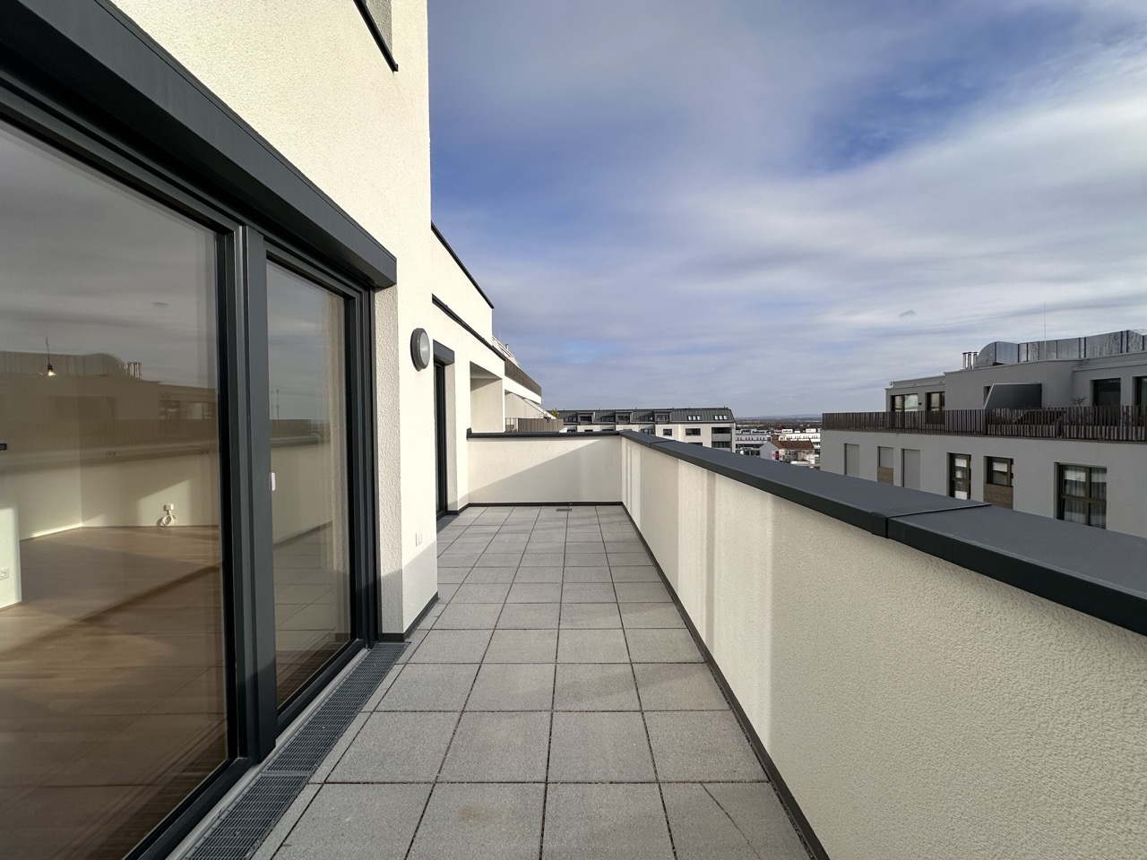 Diese ca. 57 m² große Dachgeschosswohnung bietet eine offene Wohnküche mit Zugang zu Terrasse und Balkon (zusammen über 15 m²). Ein Schlafzimmer im Obergeschoss, modernes Bad und kompakter Vorraum machen das Zuhause hell, funktional und besonders charmant.