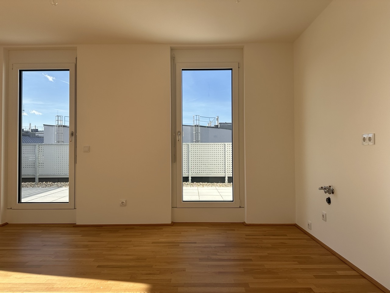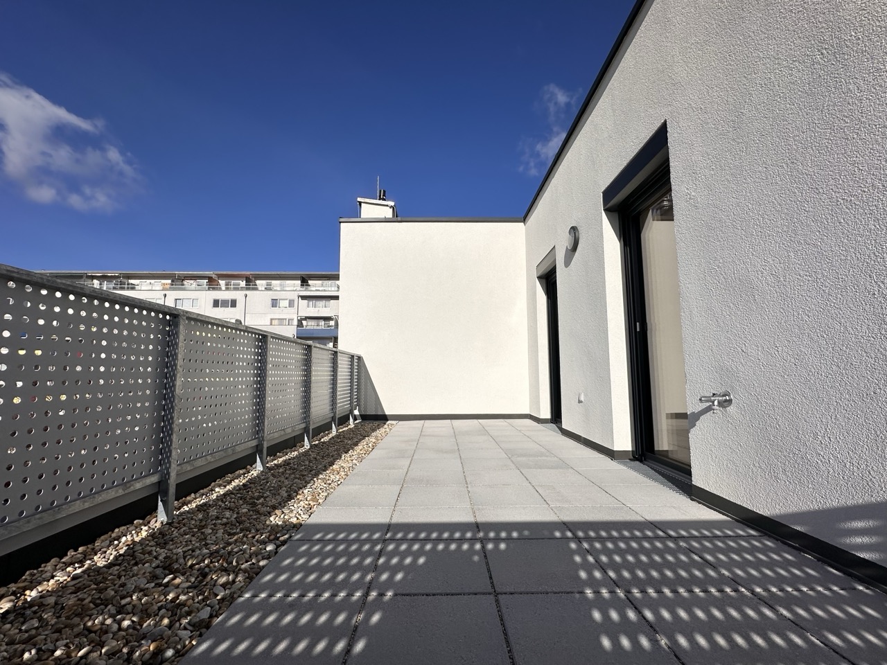 Diese ca. 46 m² große 2-Zimmer-Wohnung im Dachgeschoss bietet eine helle Wohnküche mit Zugang zu zwei Terrassen von zusammen rund 17 m². Ein Schlafzimmer, Bad, separates WC und ein Vorraum sorgen für ein kompaktes und modernes Zuhause mit Freiraum.